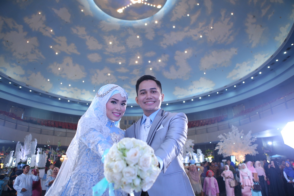 Untuk venue acara aku pilih di SMESCO convention hall lantai 2 (kapasitas bisa sampai 1500-2000 orang). Pertama kali dateng ke tempat ini langsung jatuh cinta dengan gedungnya yang cukup untuk menampung tamu undanganku, full karpet (seneeeeng bgt warna karpetnya bukan merah :p) dan ada kubah besar efek awan-awan biru gituuu.. pas banget sama konsep yang aku udah rencanain. Di SMESCO ini ada 3 area yang biasa di pakai untuk resepsi. Ada di lantai 2, lantai 4, dan di lantai dasar (masing-masing area beda management). Karena aku pakai yang di lantai 2, price di area ini per-paket semua, paket A,B,C tergantung jenis vendor terkait. Aku ambil paket A (yang paling murah haha), tapi vendor-vendornya tetap memuaskan kok!