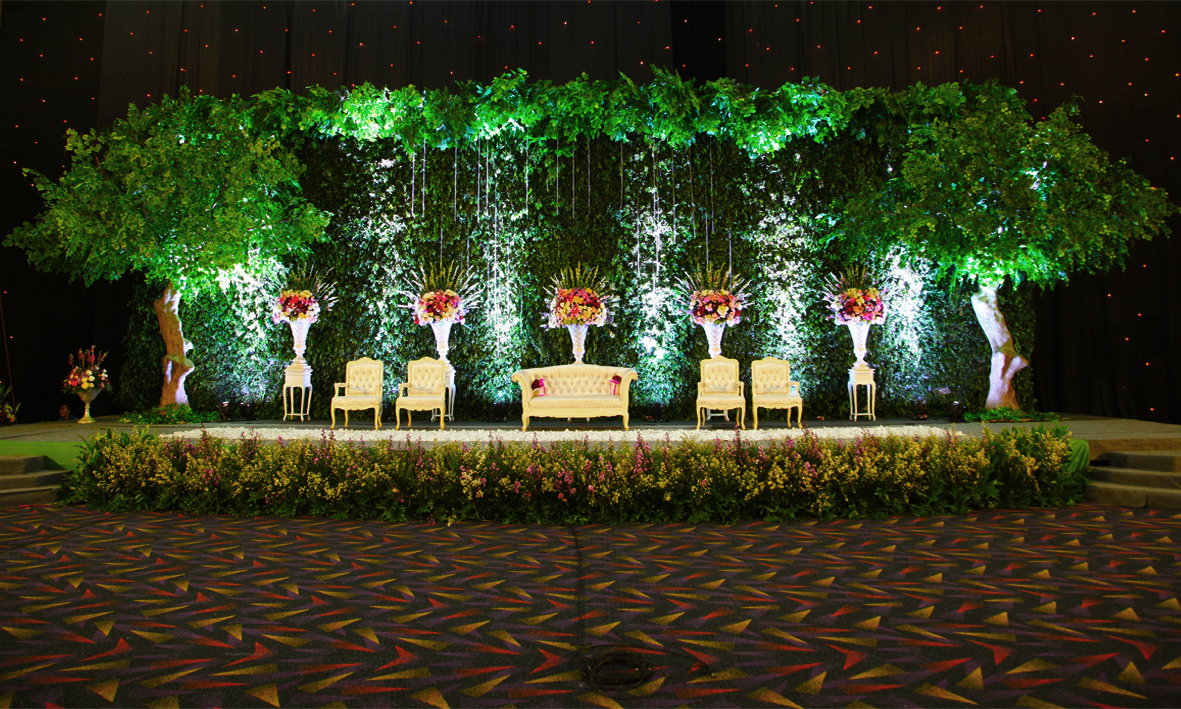 Salah satunya dengan tema Internasional yang bergaya Garden ini. Dengan dekorasi yang dominan berwarna hijau seperti taman, membuat sejuk di mata para tamu. Bukan hanya membuat sejuk saja, tamu bahkan dapat merasakan indahnya suasana seperti di taman rekreasi. Gaya garden ini sangat cocok untuk disegala ruangan. Baik ruangan yang besar, sedang, dan ruangan yang kecilpun juga dapat dibuat dekorasi bergaya garden ini.
