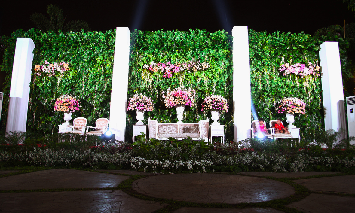 Tapi jangan khawatir, sekarang pernikahan tidak hanya dilakukan didalam gedung saja. Pernikahan juga dapat dilakukan di luar gedung atau outdoor. Dekorasi outdoor memang tidak terlalu sulit, karena tata letak dan tata ruang yang begitu megah sangat terlihat mewah dimata tamu undangan. Contohnya seperti dekorasi outdoor yang kami buat, yaitu Garden Outdoor.Dengan dekorasi yang dominan berwarna hijau seperti taman, membuat sejuk di mata para tamu. Bukan hanya membuat sejuk saja, tamu bahkan dapat merasakan indahnya suasana seperti di taman rekreasi.Ditambah indahnya malam dan lighting yang dapat memeriahkan malam pernikahan.